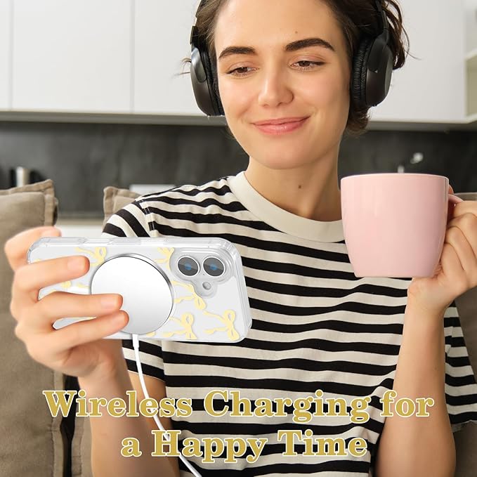 UEEBAI Magnetic for iPhone 16 Plus Case, Bow Case Compatible with MagSafe, Wireless Slim Clear Ribbon Aesthetic Phone Cover Anti-Yellowing Shockproof Protective Cover for Women Girl - Yellow