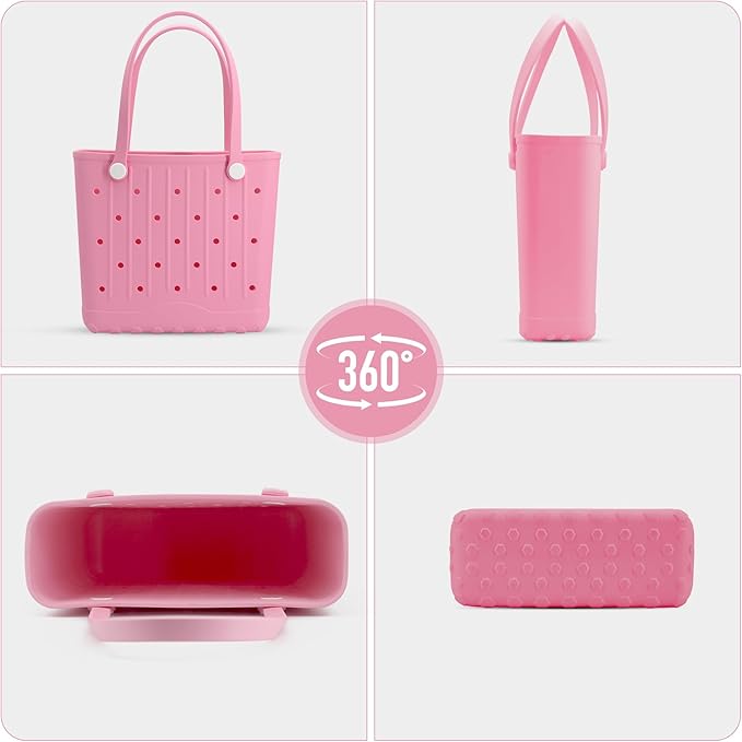 - CLASSIC RUBBER BEACH BAG: The classic round hole design and square bag body is charming and beautiful, you can also put your favorite decorations on it to make it more beautiful. The size of the bags is (WidthxDepthxHeight)L: 48x22x34cm/18.9x8.6x13.4inches,M:38x13x32cm/14.9x5.1x12.6inches,S:28x11x21cm/11x4.3x8.3inches, which is a perfect size for going out. When you want to go to the beach, have a picnic and pack things, this large beach bag will be a very good choice for you.