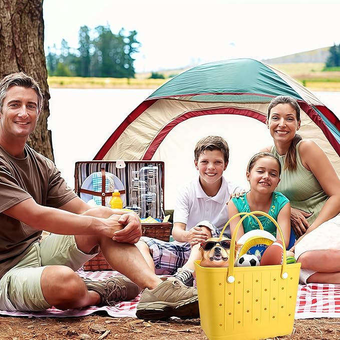 - CLASSIC RUBBER BEACH BAG: The classic round hole design and square bag body is charming and beautiful, you can also put your favorite decorations on it to make it more beautiful. The size of the bags is (WidthxDepthxHeight)L: 48x22x34cm/18.9x8.6x13.4inches,M:38x13x32cm/14.9x5.1x12.6inches,S:28x11x21cm/11x4.3x8.3inches, which is a perfect size for going out. When you want to go to the beach, have a picnic and pack things, this large beach bag will be a very good choice for you.