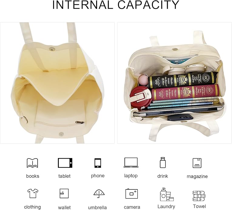 - 【Premium Canvas】Crafted from heavy-duty canvas with reinforced stitching and wear-resistant handles, this tote withstands daily wear while supporting eco-conscious lifestyles. Perfect for office commutes, grocery runs, or weekend trips.