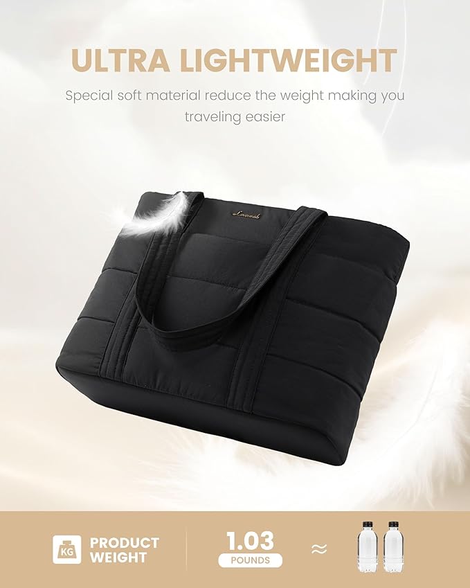 LOVEVOOK Tote Bag for Women, Large Puffer Work Tote Laptop Bag, Lightweight Travel Tote Bag with Zipper Gifts for Women