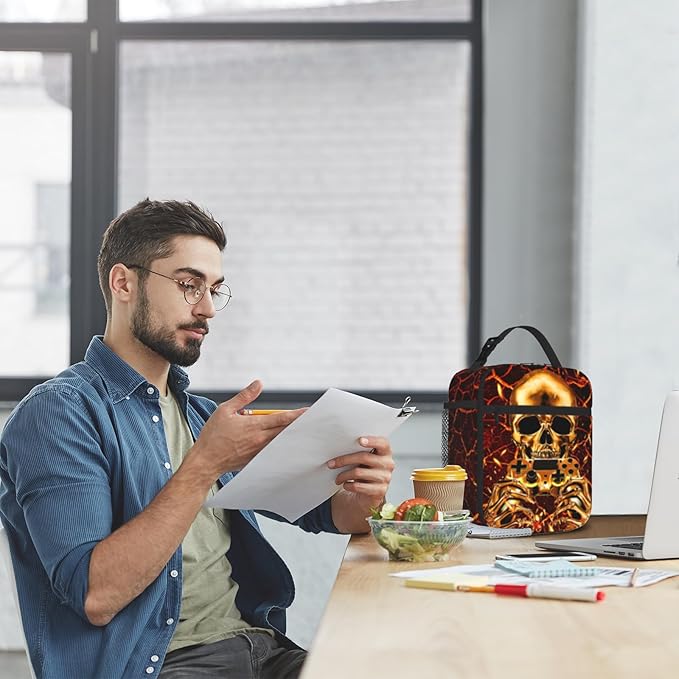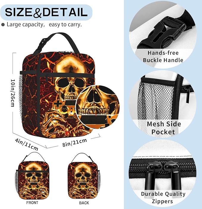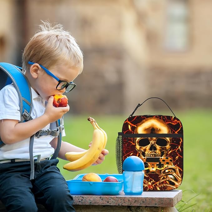 Video Game Lunch Box Skull Fire Cooler Insulated Reusable Portable Box Waterproof Leakproof Lunchbox for Boys Girls Kids Picnic Hiking Beach Travel Office
