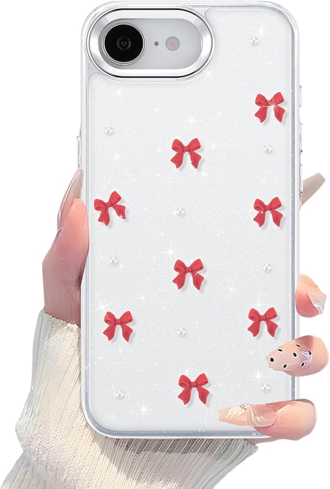 - Cute Fashionable Bow Design: Handmade 3D stereoscopic bow design, dotted with white pearls, the back of this case is sparkling transparent design, which not only shows the original appearance of the phone well, but also gives your phone a more stylish, lovely and exquisite kawaii appearance, adding unique charm to your phone. Using the glue drop sealing technology, the bows and pearls will not fall easily