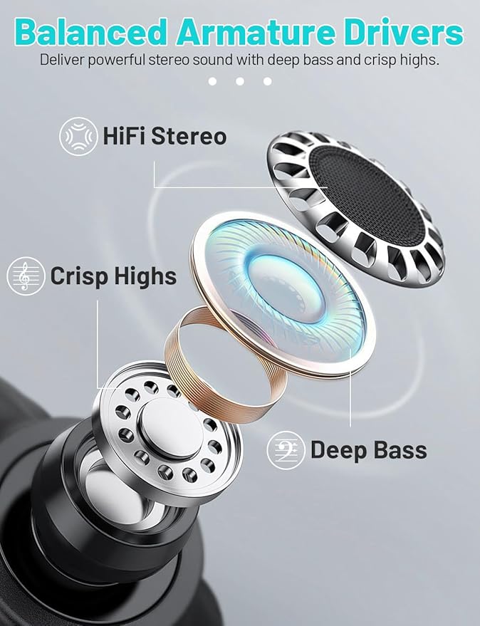 - HIGH-QUALITY HIFI STEREO SOUND:The bluetooth neckband headphones is customized with a balanced armature driver for each earbud to ensure good balance between low, high and mid-range frequencies and offer you with high-quality hifi stereo sound and deep bass. The cavity made of aluminum alloy ensures the stability of the sound without being affected by external signals. The neckband earbuds with microphone provides clear phone calls.
