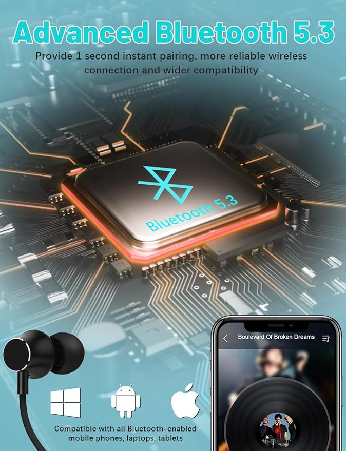 - LATEST BLUETOOTH V5.3 & ADVANCED COMPATIBILITY: Around the neck headphones bluetooth 5.3 provides fast and stable transmission without interruptions. Wireless headphones supports most bluetooth devices .It also supports Voice Assistant, just short press the power button 2 times to start "Siri" or Google Voice Assistant.