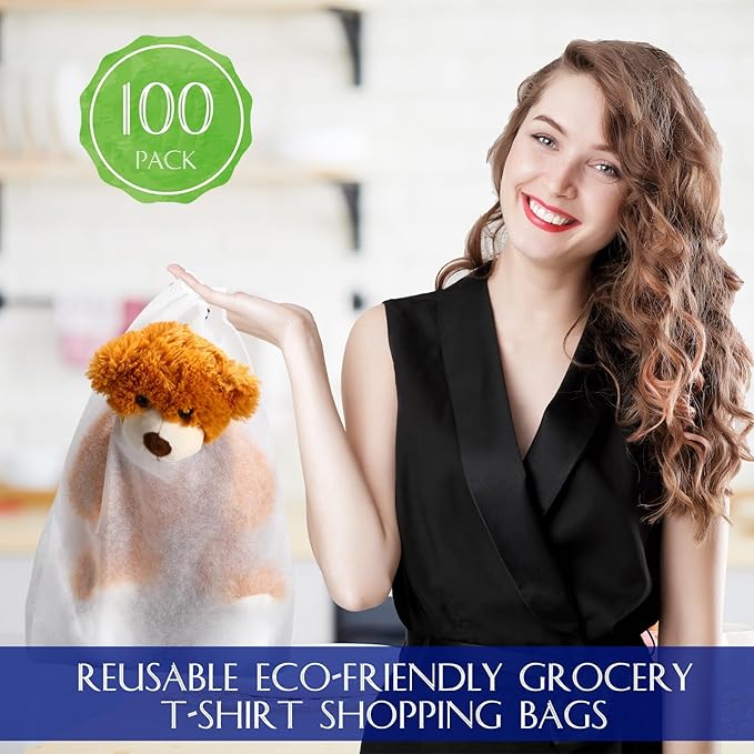 - Versatile Storage Bags: this set of 100 reusable T-shirt shopping bags features sturdy design, ideal for carrying groceries, fruits, clothes, books and more, caters to all your shopping needs while providing convenient storage solutions for travel, camping, and other activities
