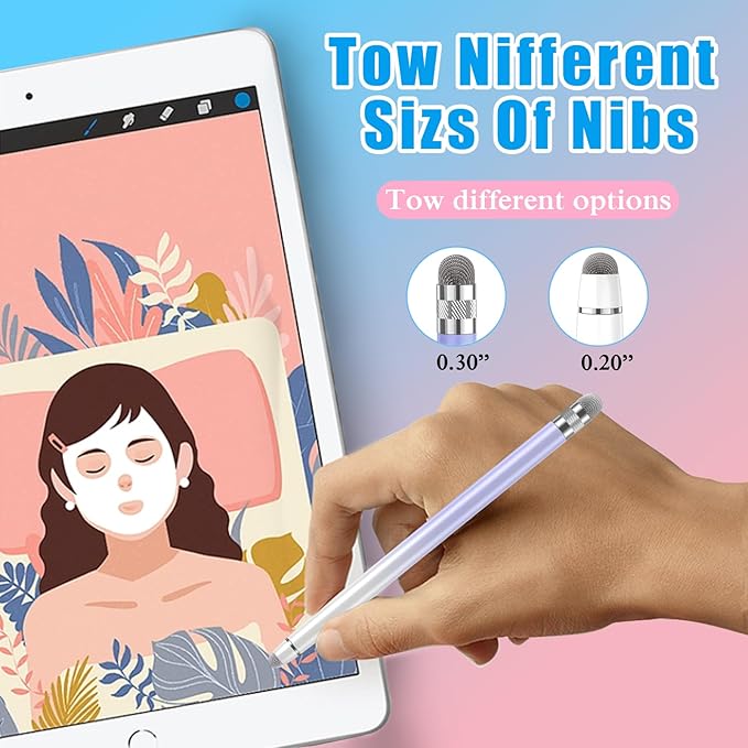 - 【Stylus Pens for Touch Screens】Stylus pen is no delay and no lag during use, and ipad stylus will not damage your screen, stylus pen for ipad has 2 different sizes of nibs so you can have more options for a more accurate writing and drawing experience.