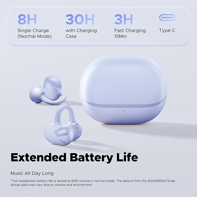 - 【Extremely Comfortable, Stable Fit】SOUNDPEATS POP Clip Open Ear Earbuds features a open-ear clip-on style. Each Open ear headphones weighs a mere 4.73g, Crafted with high-resilience TPU and A-grade memory steel wire (nickel-titanium alloy memory wire). Open Earbuds are lightweight and ergonomically designed, and we've gone through multiple rounds and 100s of wear tests to make sure you're comfortable and pressure-free, making them ideal for people who wear glasses