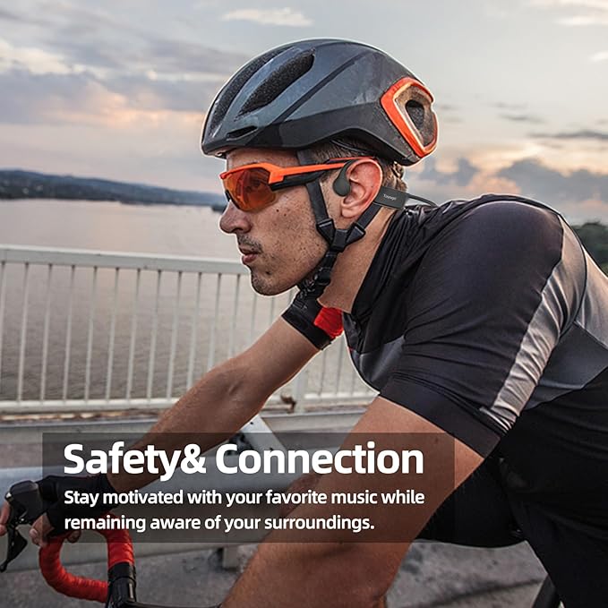 - [Open-Ear Design] Bone conduction headphones, deliver premium audio through the cheekbones, providing clear loud sound reproduction even in noisy environments. The open ear headphones allow you to enjoy music without missing the sound of your surroundings, comfortable listening while doing outdoor workouts.
