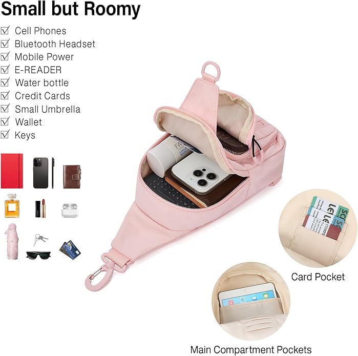 - 【Smart Organized Storage】This large sling bag for women and men features 5 strategically placed pockets: 1 quick-access open compartment (fits water bottles/compact umbrellas) + 4 secure zippered pockets including a hidden back pocket. And main compartment includes dedicated card slots and an open inner pocket.