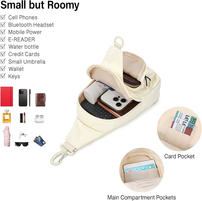 - 【Smart Organized Storage】This large sling bag for women and men features 5 strategically placed pockets: 1 quick-access open compartment (fits water bottles/compact umbrellas) + 4 secure zippered pockets including a hidden back pocket. And main compartment includes dedicated card slots and an open inner pocket.