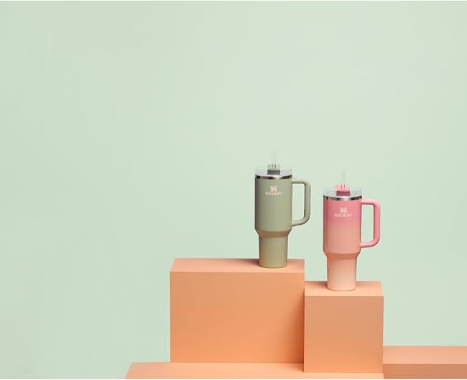 STANLEY Quencher H2.0 Tumbler with Handle and Straw 40 oz | Flowstate 3-Position Lid | Cup Holder Compatible for Travel | Insulated Stainless Steel Cup | BPA-Free | Pink Mesa Sunset