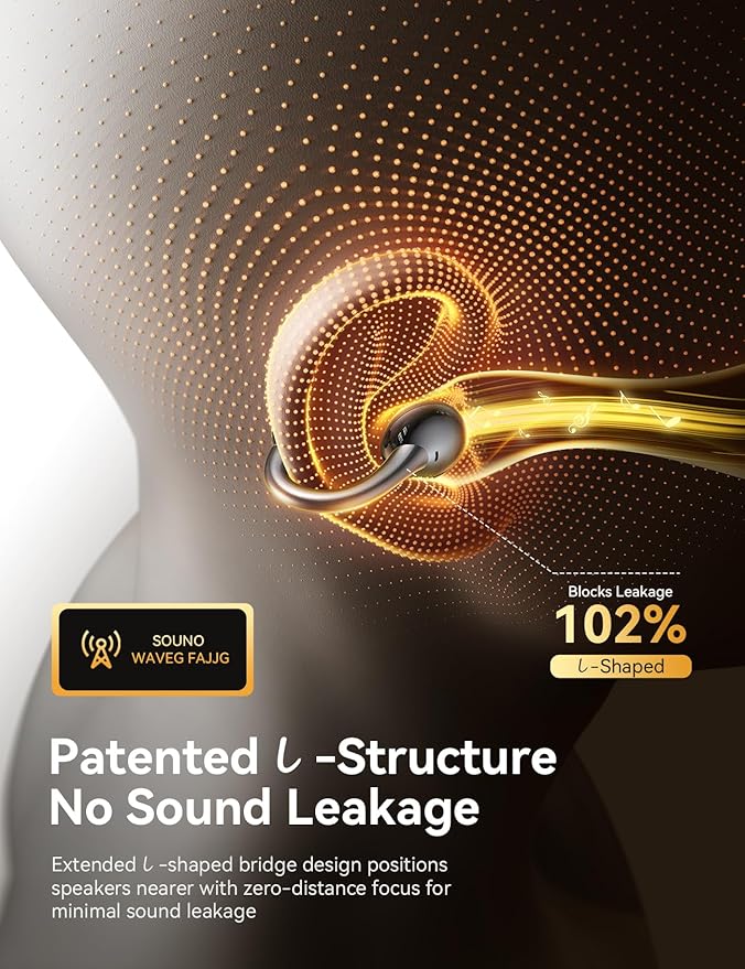 - 【All-Day Comfort】Enjoy superior sound and lasting comfort with our L-shaped open ear clip on design. By positioning the bluetooth earbuds closer to the ear canal, they deliver clearer, more precise audio while minimizing sound leakage. The open-ear style ensures all-day comfort and keeps you aware of your surroundings—perfect for workouts or daily use. Crafted from high-elastic, skin-friendly silicone and weighing only 4.9g, these clip on earbuds offer a secure, ultra-light fit. Whether you're running, working, or relaxing, the ergonomic design stays comfortably in place—even during extended wear
