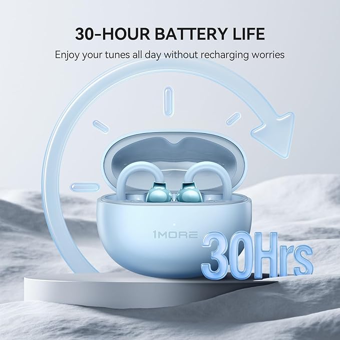 1MORE S20 Open Ear Headphones, Lightweight Comfort Clip-On Wireless Earbuds, 30H Playtime Bluetooth 5.4 Headphones with 4 ENC Microphones, IPX5 Water Resistance, Secure Fit for Sports Workout, Blue