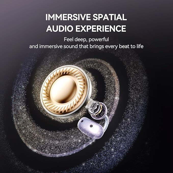 - [Immersive Spatial Audio Experience] Enjoy theater-like sound from these Hi-Res LDAC-certified wireless earbuds. BassMore+ technology delivers deep, punchy lows while 11mm dynamic drivers create a 360° panoramic soundstage, making these wireless headphones perfect for music, movies, and gaming.