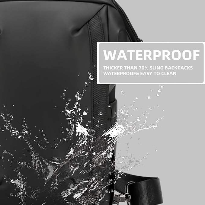 Mens Crossbody Bag,Black Sling Crossbody Backpack Shoulder Bag for Men Women PU Watrtproof Sling Backpack Cycling