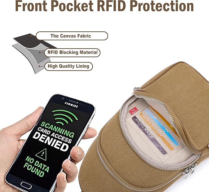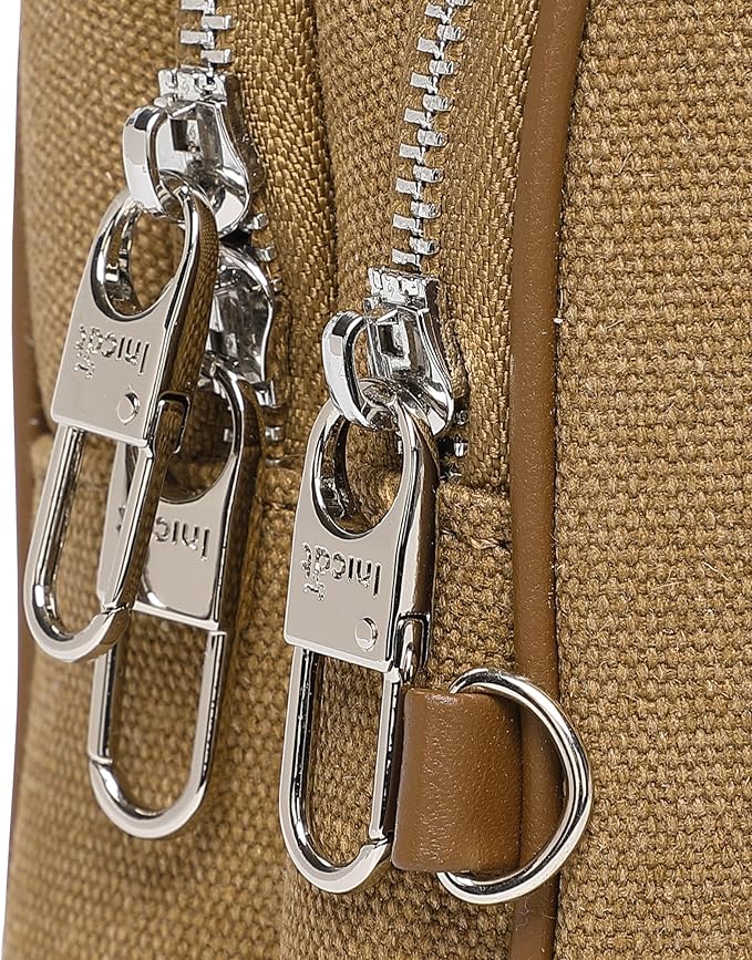 - Anti-Theft Design:(Size about Length:6.5 in, Width:3 in, Height:11 in)This canvas crossbody bag features dual lockable zippers on the main compartment for secure storage, while the side security lock provides added protection. Perfect as a theft-resistant sling backpack for travel or daily use, offering both safety and convenience