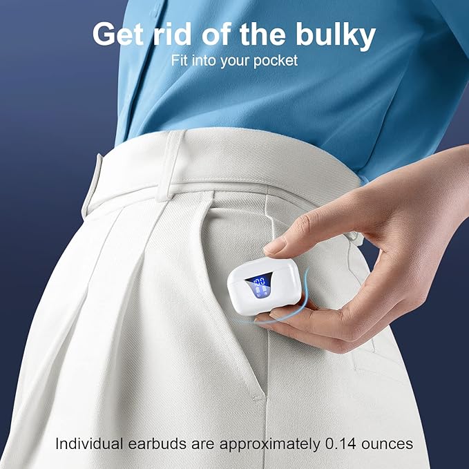 - 50-Hours Power Marathon & LED Power Tracker: The built-in LED display shows exact remaining power (0-100%), while the 500mAh portable charging case delivers a whopping 50 hours of total playtime by alternating between wireless earbuds. Built tough with 500+ charge cycles, these ear buds are future-proof.