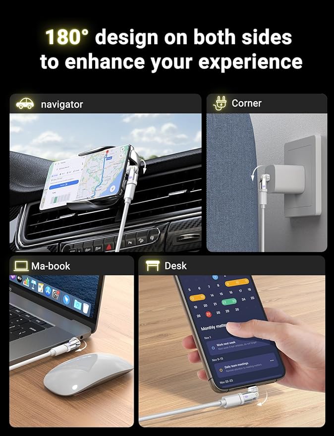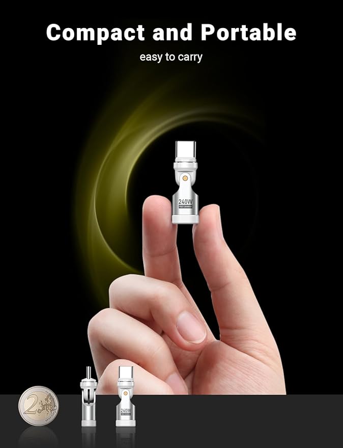 - šš„šš«š-ššš«šØš§š ššš š§ššš¢š š šØš«šš: Our 180 degree usb c adapter features top-tier magnets for a secure connection. Experience quick, one-second magnetic adsorption for hassle-free charging. The magnetic tip also allows for easy plug and unplug, reducing the risk of damage to your USB-C devices.