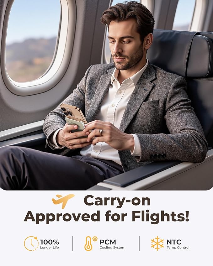 - Low-Temperature Charging & 3X Longer Lifespan: our advanced solid-state power bank maintains 80% capacity after 1,000+ cycles (vs. 60%-80% capacity after 300+ cycles for lithium-ion), extending lifespan by over 3 times. Intelligent thermal control keep battery heat below 99°F (37°C), effectively protecting your iPhone's battery life