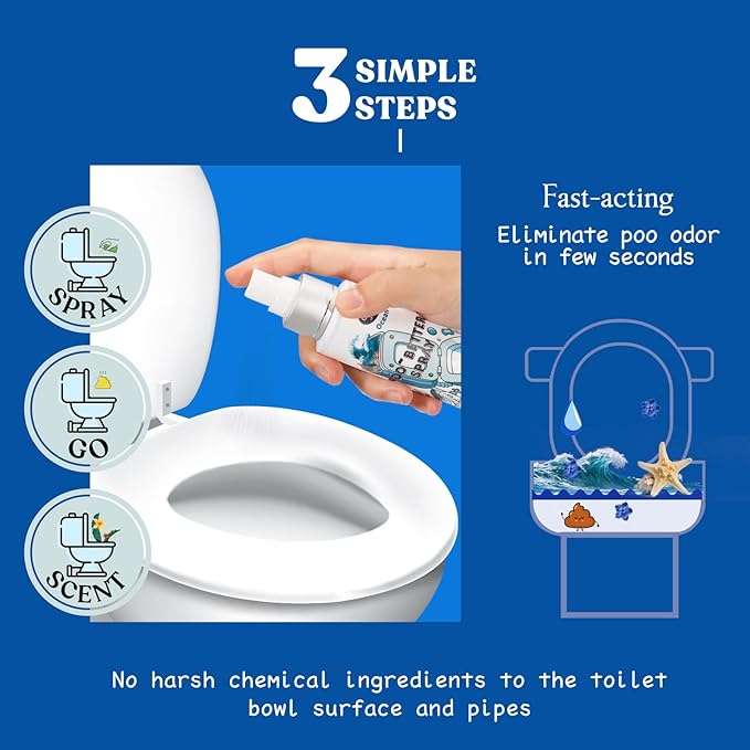 - LONG LASTING FRESHNESS: 2*3.4 FL.OZ ≈ Up to 400 Uses ≈ 2 Months for average poopers. It neutralizes the odor of poop in few seconds, and no one else will ever know