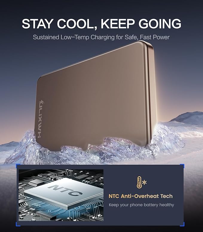 - Advanced Heat Management for Safe Charging - Stay cool and charge smarter. Featuring NTC temperature control technology, this slim phone charger battery pack portable stays up to 50℉ cooler than conventional for magsafe portable charger. the magnetic power bank for iphone protect your phone from overheating, even during heavy use or in hot weather, while ensuring optimal battery health