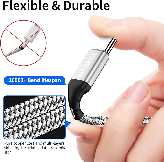 - Tangle-Free Nylon & Aluminum Body: The nylon-braided cable resists knots and tangles, while the aluminum shell withstands drops, scratches, and daily wear. Built to last! Compact design fits side-by-side on laptops with 2 USB c ports—no bulk, no clutter