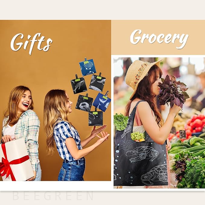 - Charming Animal Patterns |(Set of 6): Add a burst of color to your shopping routine with these foldable reusable grocery bags. Featuring 6 vibrant animal designs, these grocery bags are designed for both men and women and add a playful touch to any errand. Ideal for shopping, organizing, or gifting for holidays like Christmas, Thanksgiving, and Mother's Day. Encourage sustainability while reducing plastic waste!