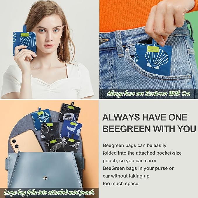 - Convenient & Compact Design: When not in use, these reusable shopping bags easily fold into a compact, attached pouch, making them simple to store in your purse, car, or bag. No more forgetting your tote bags bulk—take them everywhere to be prepared for spontaneous shopping trips.