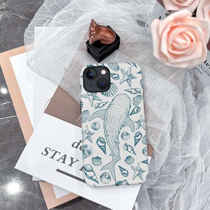 DAIZAG Case Compatible with iPhone 15 Plus,Fit Shockproof Cover for Women Girls,Beach Seashell Whale Ocean Aesthetic