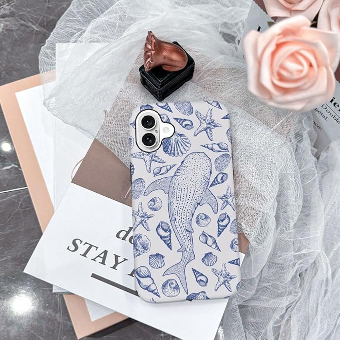 DAIZAG Case Compatible with iPhone 16,Fit Shockproof Cover for Women Girls,Blue Seashell Whale Shark Ocean