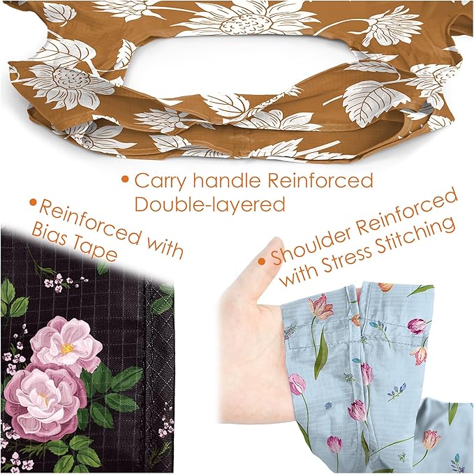 - 🌿 Earth-Conscious & Stylish Flower Print Design – This set of 6 reusable grocery bags features vibrant and charming flower patterns, adding a playful touch to your shopping trips while helping curb plastic waste. Ideal for planet-aware shoppers, flower lovers, and anyone who wants to make a sustainable statement! Each bag is designed to be both practical and chic, making them great for daily errands, grocery runs, or even as a fashionable accessory