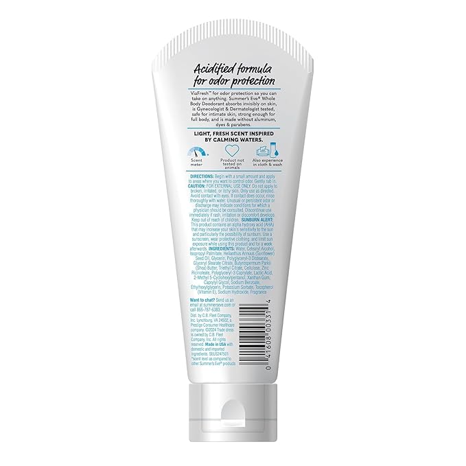 Summer's Eve, Whole Body Deodorant for Women, Ultimate Odor Control, Aluminum Free Deodorant, 3 Fl Oz + Feminine Body Wash with Boric Acid, Removes Odor, pH Balance, 15 Fl Oz