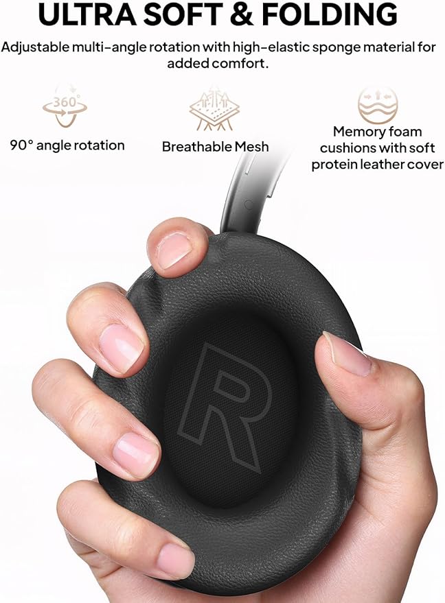 - All-Day Comfort & Foldable Design: Designed for extended wear, the ultra-soft protein leather ear cushions and adjustable headband provide a snug, fatigue-free fit. The foldable, lightweight design makes these headphones perfect for travel, easily fitting into backpacks or carrying cases, which are perfect for travel, sports and everyday use