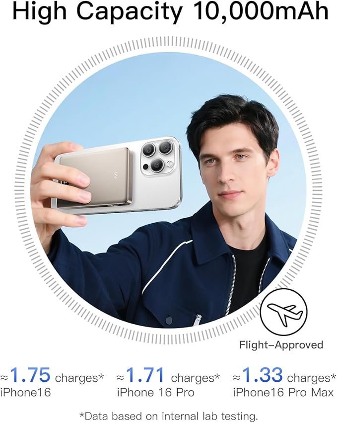 - LED Battery Display: The LED digital display visually shows the remaining power of the magnetic battery backup, whether you are Travelling/Business Trip/Short Walking/Leisure Time, you can charge your phone anytime, anywhere without power-anxiety. It is specially compatible with the iPhone 17/16/15/14/13/12 series without case, or in a magnetic case.
