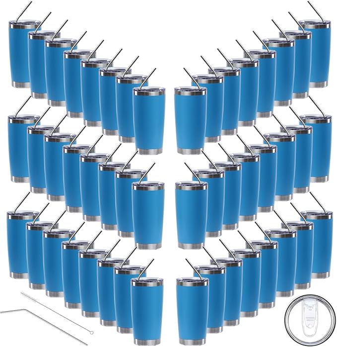 - 2:Package includes::48pack sky blue blank tumblers, 48pack metal and metal cleaner, 48pack silicone base, 48pack white White box, 48pack push lid.