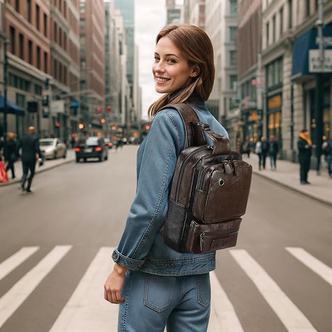 - -Gift for Men- --With its stylish design, soft leather feel, and practical features, this versatile sling backpack makes a thoughtful gift for birthdays, holidays, or special occasions