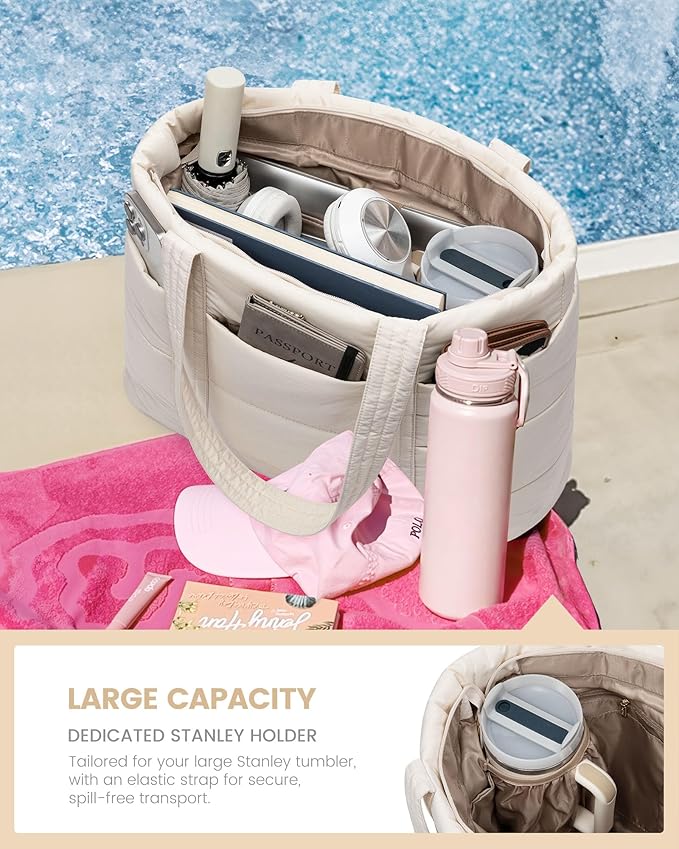 LOVEVOOK Tote Bag for Women, Large Puffer Work Tote Laptop Bag, Lightweight Travel Tote Bag with Zipper Gifts for Women