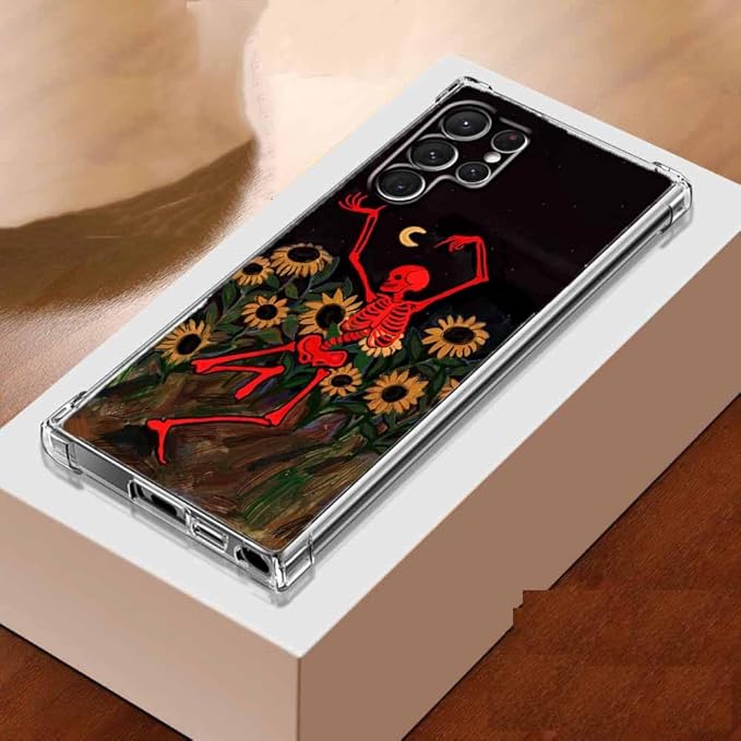 Case for Samsung Galaxy S23 Ultra with Dancing Skull Design,Cute Hippie Skeleton Flowers Pattern,Clear Soft TPU Bumper Phone Cover,6.8"(Skull,S23U)