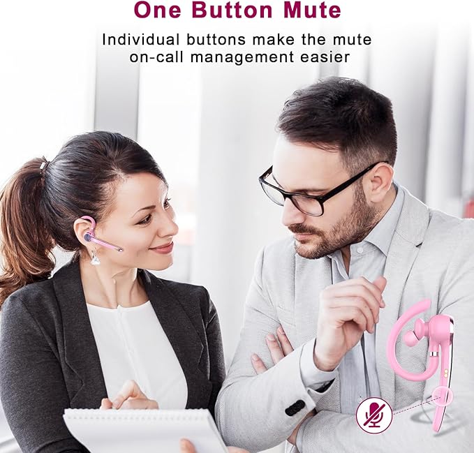 Bluetooth Headset, Wireless Bluetooth Earpiece with 500mAh Charging Case 72 Hours Talking Time Built-in Microphone for iOS Android Cell Phone, V5.1 Hand-Free Headphones for Trucker, Office-Pink
