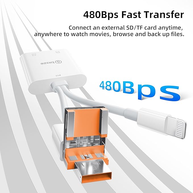 - 【Ultra-fast Data Transfer】Experience ultra-fast 480Mbps transfers with this biaze sd card reader, which can transferring photos and videos from your camera to your iPhone in a short amount of time. It allows you to quickly transfer large files and photos, saving your precious time, perfect for HD content creators needing rapid, reliable file management.