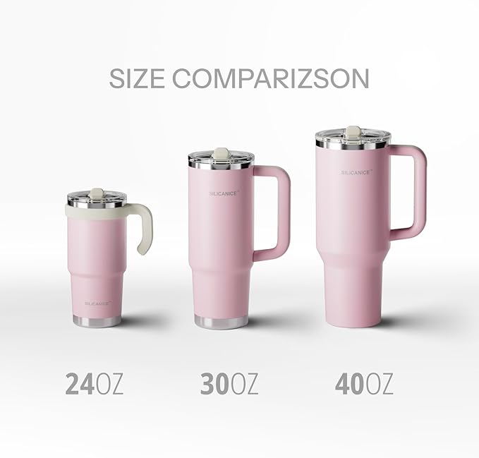 - PERFECT FIT, EVERY TIME: With a NO-slip handle and a narrow base that fits most car cup holders,Narrow base fits 90% vehicle holders; Carry Handle Water Bottle with Handle & Straw prevents slips during runs or drives. 100% leak-proof design completely solves the problem of fitting some car cup holders the SILICANICE tumbler with handle is as easy to carry as it is to store. Ideal for your commute, gym bag, or next road trip, this insulated tumblers is always right by your side.
