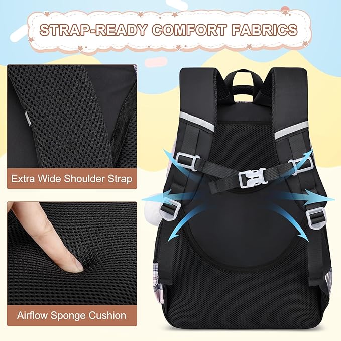 - Girls Backpack with Lunch Box: The spacious backpack is crafted from water-resistant, durable nylon fabric and features sturdy metal zippers. The insulated lunch bag is made of high-quality thick material, offering excellent heat retention and freshness preservation.