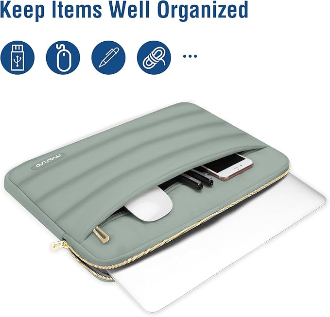 MOSISO 13.3 inch Laptop Case, 13-13.3 inch Puffy Laptop Sleeve Compatible with MacBook Air 13 13.6 M4 M3 M2 M1/Pro 13/Pro 14, HP Dell ASUS Lenovo,Polyester Horizontal Bag with Small Case,Antique Green