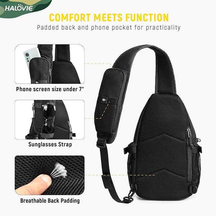 HALOVIE Crossbody Sling Bag Anti Theft Crossbody Backpack RFID Sling Backpack Lightweight Travel Hiking Chest Bag