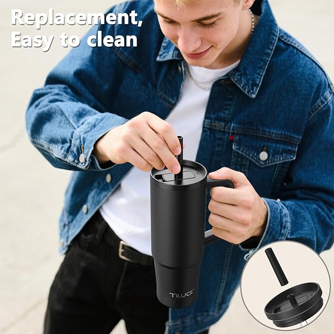 - 【Easy to Clean】The TILUCK 30 oz tumbler with Handle is dishwasher safe. Both the top silicone straw and the inner clear straw are removable, allowing for thorough, worry-free cleaning and better hygiene