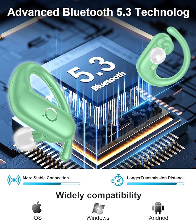 MOZOTER Wireless Earbuds Bluetooth Headphones Sport,Over Ear Buds with Deep Bass Sound,60Hrs Playtime Earphones Redesigned Comfort Fit with Earhooks for Running,Meeting,Workout- Green