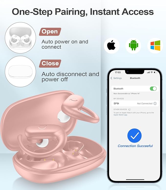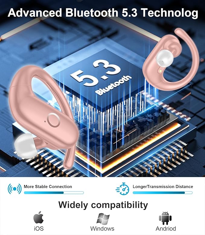 - 【Over-Ear Design for Unmatched Comfort】MOZOTERover-ear headphones feature a unique design that rests gently and securely on top of your ears, ensuring a natural, pressure-free listening experience. The soft silicone ear hooks provide a snug and stable fit, making them perfect for all activities—from workouts to everyday wear