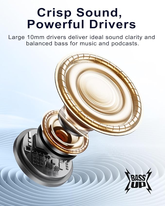 - Powerful Deep Bass Sound: Kurdene true wireless earbuds have oversized 10mm drivers ,Get the most from your mixes with high quality audio from secure that deliver powerful sound with boosted bass so you can lose yourself in your favorite songs