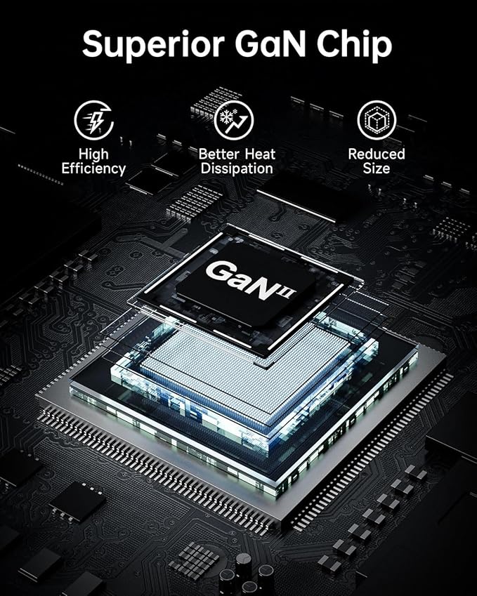 - 【Powered by GaN+ Technology】:achieving superior power density and efficiency compared to traditional silicon-based models. Yields compact, lightweight designs with minimized energy loss, optimized energy utilization, and decreased heat generation